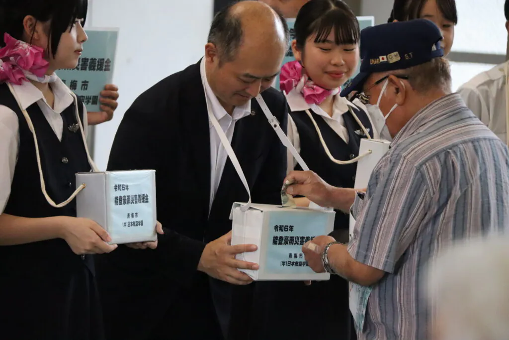 3日間の街頭募金および9月29日の日本航空学園・青梅キャンパスでお預かりしました合計2,523,824円の募金につきましては、全額を学校法人日本航空学園「日本航空大学校 石川」、「日本航空高等学校 石川」の能登空港キャンパスがある石川県輪島市へ送金いたしました。