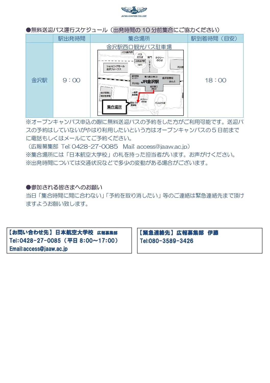 石川 能登空港キャンパス 無料送迎バス集合場所