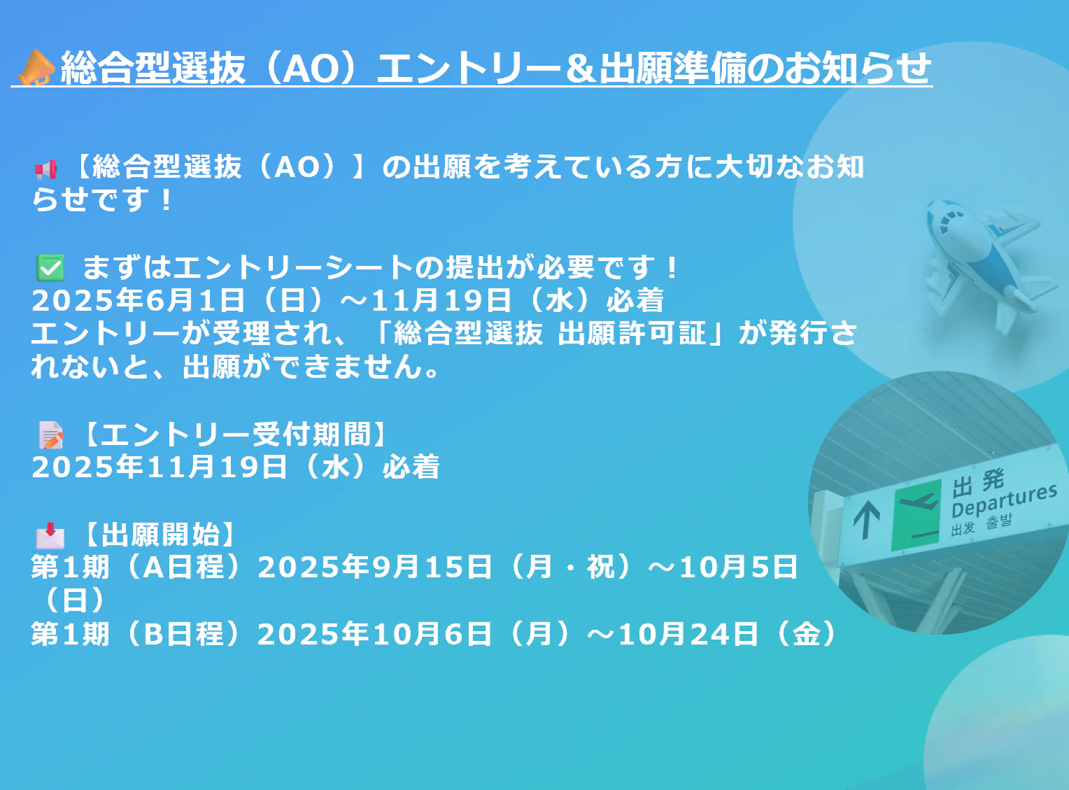 総合型選抜(AO)エントリー&出願準備のお知らせ